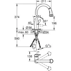 Grohe Mitigeur évier Parkfield, DN 15, Bec Orientable, Bec Orientable, Coloris: Chrome – 30215001