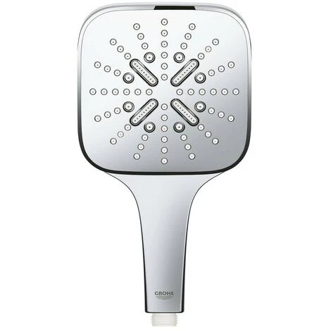 Surface de jet chromée GROHE Rain avec DripStop, Jet tonique avec DripStop et ActiveMassage GROHE EcoJoy débit limité inférieur à 9.5 l/min GROHE DreamSpray jet parfaitement uniforme GROHE SmartTip Sélection du jet grâce à un bouton GROHE StarLight Chrome éclatant et durable Procédé anti-calcaire SpeedClean Inner WaterGuide, longévité maximale Système de montage universel : s’associe avec tous les flexibles de douche