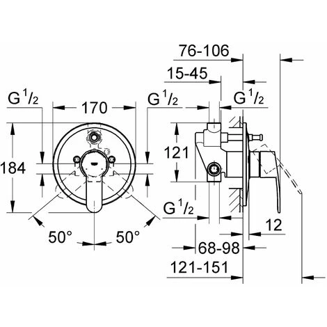 miscelatore incasso par doccia/vasca Serie eurostyle Cosmopolitan art. 33637002 en ottone finitura cromo con cartuccia une dischi ceramici, deviatore automatique, limitatore Di portata.Je miscelatori eurostyle Cosmopolitan sono forniti Di Serie con avec.
