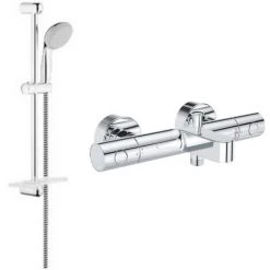 Profitez aujourd’hui d’un lot unique pour votre salle de bain. Il comprend un mitigeur baignoire Grohe Grohtherm, sa douchette, barre de douche et porte-savon. Avec ça, soyez certain qu’il s‘adaptera parfaitement à tout type de salle de bain.