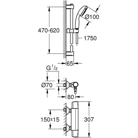 Caractéristiques techniques de l ensembke de douche thermostatique Precision Trend GROHE