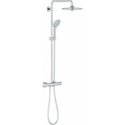 L’impressionnant système de douche à économie d’eau GROHE Euphoria 260 avec thermostatique ajoute instantanément un design remarquable et un confort exceptionnel à n’importe quelle salle de bains moderne. Il s’agit également d’un véritable concentré des technologies de pointe GROHE, aux performances révolutionnaires. Réglez la température souhaitée avec GROHE TurboStat et l’eau restera exactement comme vous l’aimez, quelle que soit la fluctuation du débit d’alimentation. La fonction GROHE SafeStop, simple d’utilisation, limite la température de l’eau à 38 °C maximum (idéale pour apprendre aux enfants à se débrouiller tout seuls dans la salle de bains) mais permet de l’augmenter pour les adultes. La technologie AquaDimmer vous permet de contrôler sans effort le débit de l’eau, mais également de basculer entre la douche de tête et la douchette, qui est associée à un flexible TwistFree de 1 750 mm. GROHE EcoJoy limite le débit de l’eau à 9,5 L/min, tout en assurant un confort optimal. La technologie GROHE DreamSpray garantit un débit d’eau rigoureusement identique dans chaque buse. La douche de tête de 260 mm propose trois zones de jets différentes. Le jet « Jet » est puissant et fin, idéal pour rincer un shampoing et masser vigoureusement votre tête ou votre cou. Le jet SmartRain est plus large et propose une expérience à la fois revitalisante et relaxante, et le jet Rain utilise, quant à lui, toutes les buses de la large plaque pour couvrir l’ensemble de votre corps et vous offrir une douche parfaitement apaisante. Pour choisir le jet, il vous suffit de tourner le bouton ergonomique situé au centre de la douche de tête. Son bras de 450 mm pivote à 180° pour une flexibilité optimale. La douchette de 110 mm propose également un choix de trois types de jets : dorlotez votre peau avec le doux jet Rain, le jet économe en eau SmartRain ou le jet puissant Massage. Grâce aux buses en silicone SpeedClean, débarrassez-vous facilement de la saleté et du calcaire ! Le revêtement multicouche à finition chromée résistante aux rayures GROHE StarLight conservera son éclat des années, tandis que la technologie Inner WaterGuide empêche la surface de la douche de devenir trop chaude. Système de douche GROHE Euphoria 260 – une douche absolument parfaite !