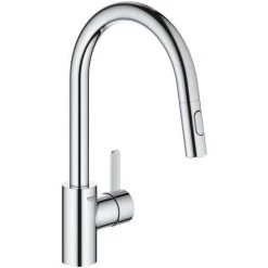 Caractéristiques du Mitigeur cuisine avec douchette extractible 2 jets, col de cygne, Chrome, Grohe Eurosmart Cosmopolitan (31481001) :