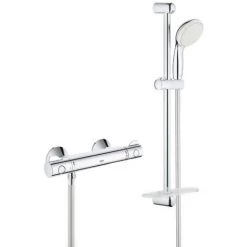 Caractéristiques du Set Mitigeur thermostatique douche + Douchette 2 jets + Barre de douche + Flexible + Tablette, Grohe Grohtherm 800 (34558000-TEMPESTA2) :