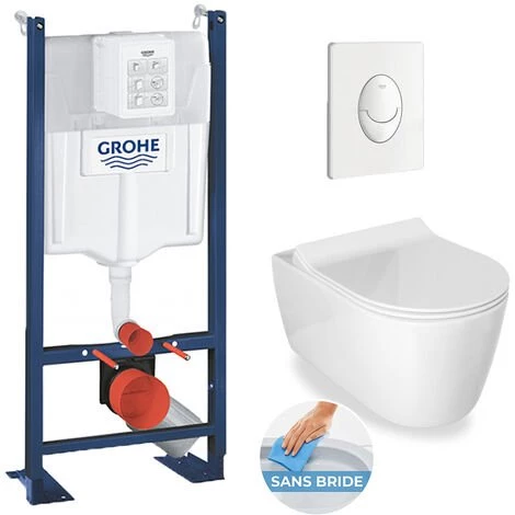 Contenu du pack WC Grohe Rapid SL autoportant + cuvette Idevit Alfa sans bride + plaque blanche (ProjectAlfaRimless-3):