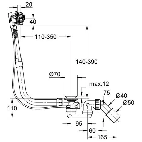 Caractéristiques du kit de vidage – remplissage de baignoire Grohe Talentofill