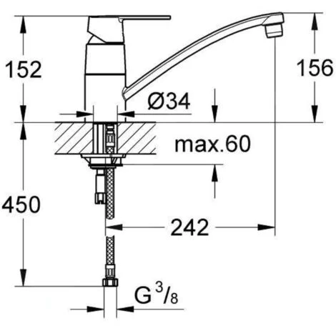 Caractéristiques techniques du mitigeur de cuisine bec bas chromé Get GROHE