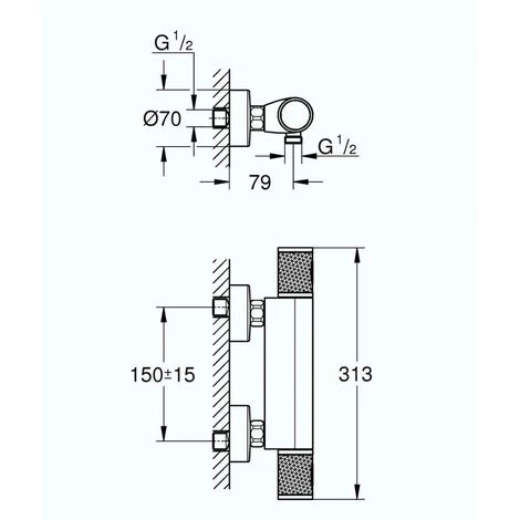 Caractéristiques techniques du mitigeur thermostatique de douche Grohe Mural Precision Feel THM