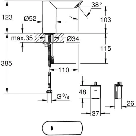 Mitigeur lavabo Bau Cosmopolitan E infrarouge monofluide