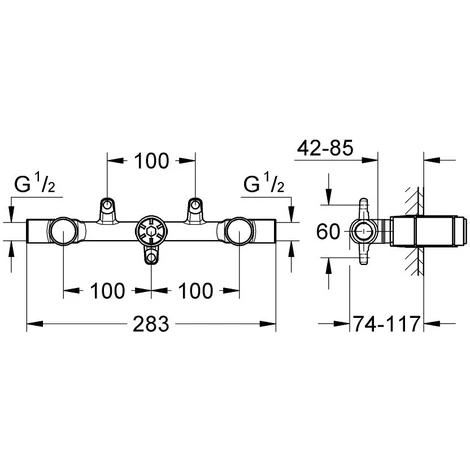 Robinets eau chaude/eau froide, avec têtes céramique 1/2 90°