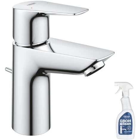 Supprimez traces de calcaire et de saleté sans agresser la surface de votre robinetterie avec le nettoyant Grohe GrohClean.