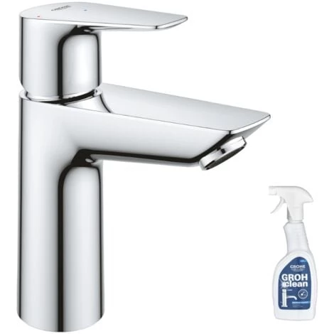 Supprimez traces de calcaire et de saleté sans agresser la surface de votre robinetterie avec le nettoyant Grohe GrohClean.