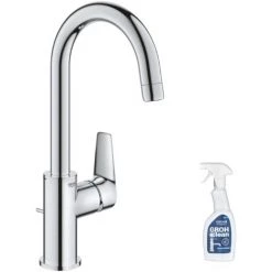 Supprimez traces de calcaire et de saleté sans agresser la surface de votre robinetterie avec le nettoyant Grohe GrohClean.