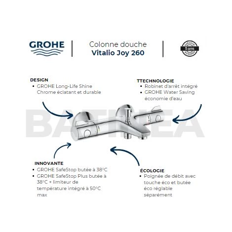 Caractéristiques du mitigeur thermostatique baignoire Grohtherm 800 GROHE :