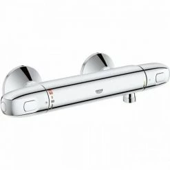 Mitigeur thermostatique Douche – Montage mural apparent – GROHE CoolTouch Minimise les risques de brûlures – GROHE StarLight Chrome éclatant et durable – GROHE MetalGrip poignées ergonomiques en métal – GROHE SafeStop butée a 38°C – GROHE SafeStop Plus butée a 38°C + limiteur de température intégré a 50°C max