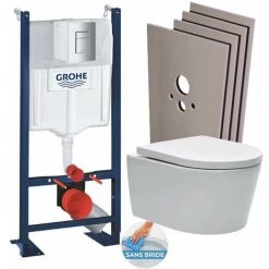 Caractéristiques du Pack Bâti autoportant RapidSL + WC sans bride SAT, fixations invibles + Abattant softclose + Plaque chrome mat + Set habillage :