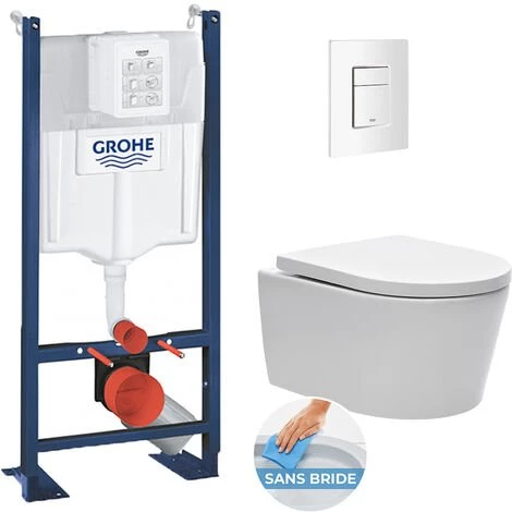 Caractéristiques du Pack WC Bâti autoportant avec Cuvette Swiss Aqua Technologies sans bride + Plaque blanche (ProjectSATrimless-4) :