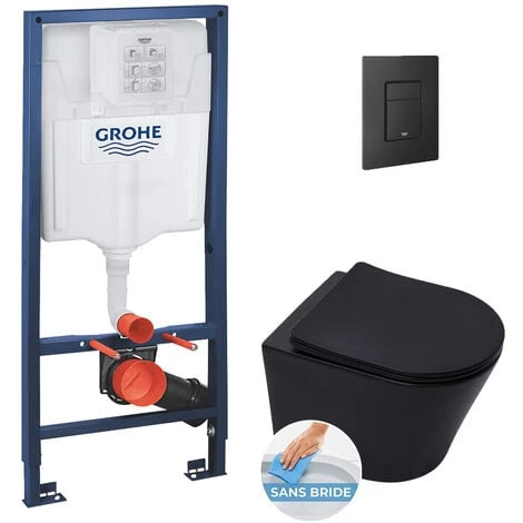Caractéristiques du Pack WC Bâti-support Rapid SL + WC Infinitio sans bride noir mat + Abattant softclose + Plaque noire (RSL-BlackInfinitio-KF0) :