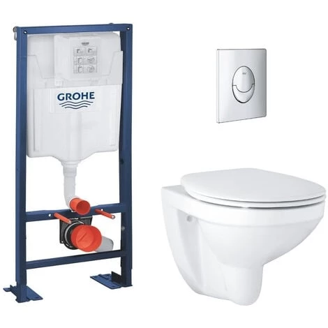 Cuvette Grohe Bau Ceramic avec bâti support Rapid SL Grohe et plaque de commande chromée – (Ref : 39497000_38340001 _38505000)