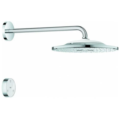 Set composé de: braignoirs de tête Rainshower SmartConnect 310 Cube (26643), fond de douche chromé, types de faisceau: PureRain, ActiveRain, type de faisceau de démarrage programmable, bras de douche horizontal 422 mm (26146), avec télécommande sans fil pour sélectionner ou combiner le faisceau (support pour viser ou coller au mur), 3x batterie mignon AAA et 1x CR 2032 cellule bouton, indicateur DE CONNEXION ET CHANGEMENT de batterie, télécommande étanche IP57, EcoJoy 9,5 l/min Support de débit, Support de débit DreamSpray, StarLight, Système anticalk SpeedClean, système anticalculable, inséminable, pour chauffe-eau de passage, réglable en 1,5 bar