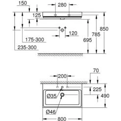 Grohe Cube Céramique Vasque à Poser 80cm, Blanc Alpin (3947600H)